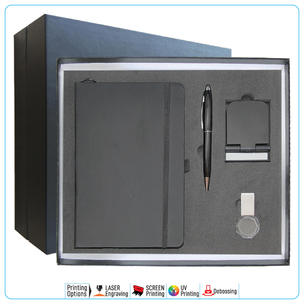 This corporate gift set Contains total of 4 Products packed in a black gift box are stylish better presentation.