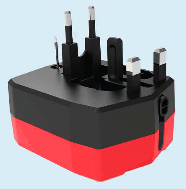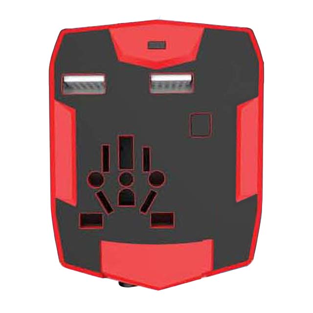 Krumq Universal world travel adapter with 3000 mAh power bank. World travel adapter covers more than 150 countries with US/EU/AU/UK plugs. Dual USB outputs to charge and power up devices. Manufactured from Fire resistant PC Materials. Made in Germany.